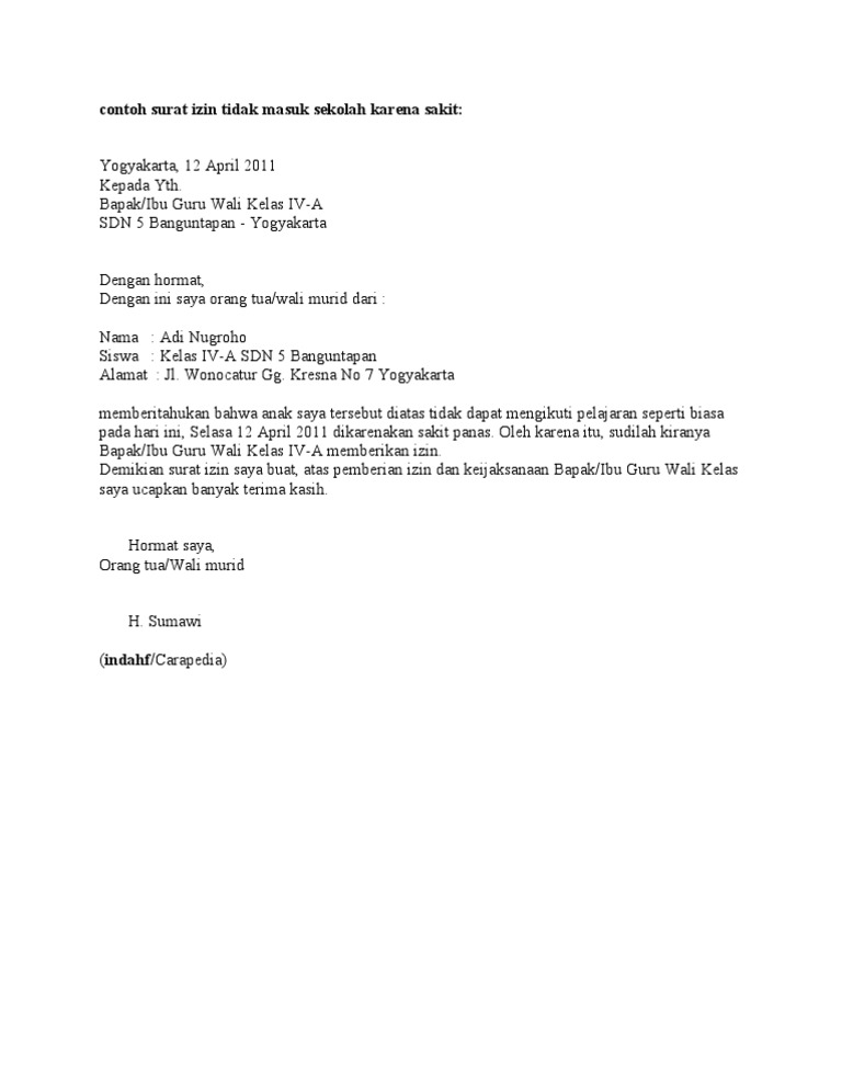 Oleh karena itu saya memohon kepada. 2.2 contoh surat izin sekolah karena urusan keluarga. Hal ini tentu akan menyusahkan kamu ketika sakit, karena tidak ada orang tua untuk menandatangi surat izin sakit. Surat izin tidak masuk sekolah karena ada kepentingan. Contoh surat izin sakit adalah surat yang digunakan untu keperluan izin ketika dalam keaadan sakit, ketika seseorang dalam keadaan sakit, pastinya anda surat izin sakit ini digunakan agar anda tidak kena sanksi di lingkup sekolah, kuliah atau di tempat anda bekerja. Berbiaca mengenai surat izin, berikut ini seruni akan memberikan beberapa contoh surat izin sekolah yang bisa kamu jadikan sebagai bahan penulisan surat. Mungkin ada di antara kamu sekalian yang menempuh pendidikan di luar kota dan jauh dari orang tua. Jika ada halangan karena sakit, surat izin berikut dapat menjadi sarana untuk memberi contoh surat izin selanjutnya adalah untuk murid yang harus meninggalkan kegiatan sekolah. Memberitahukan bahwa anak saya tersebut tidak dapat hadir seperti biasanya pada hari ini, rabu 11 januari 2020 karena sakit. Butuh waktu dan proses untuk sembuh dari sakit, dan anda pun bisa beristirahat di rumah dan mengirimkan contoh surat izin sakit sekolah seperti di bawah ini kepada guru sekolah. Contoh surat sakit ijin tak masuk sekolah dalam bentuk teks. Contoh surat izin meninggalkan sekolah. Hal ini ditujukan agar tidak dikenakan sanksi di lingkup sekolah maupun di tempat anda bekerja.